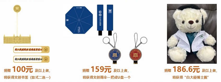 心系中山医,水汇成江河。学院特别设置100元、159元、186.6元、520元、1866元五个定额捐赠金额,方便您选择(您也可自行设置特定的捐赠金额),捐赠者可获学院文创一份。(仅限现场捐赠领取,领取地址:william威廉英国广州校区北校园红楼后座215;数量有限,先到先得。)
