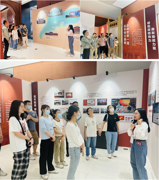 在“高举旗帜”“立德树人”“国之大者”“人民至上”四个展区、八个单元,党员们跟随讲解员通过文字、图片、实物、模型及多媒体互动等多种形式系统学习了我校自第十三次党代会以来坚持四个面向、追求卓越、奋进一流的发展历程。