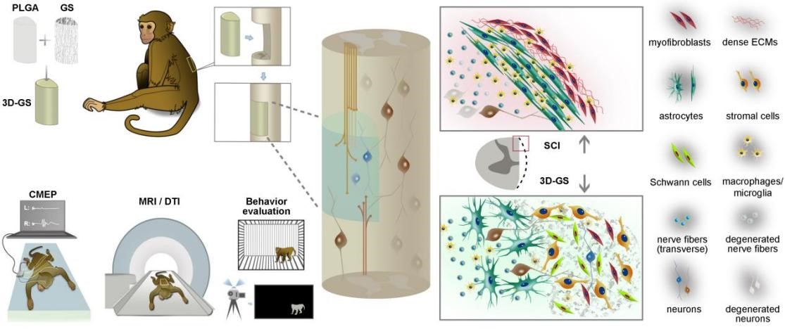 我院曾园山教授团队发表移植组织相容性的三维明胶海绵支架减少食蟹猴脊髓损伤区纤维瘢痕,增强神经组织再生的研究