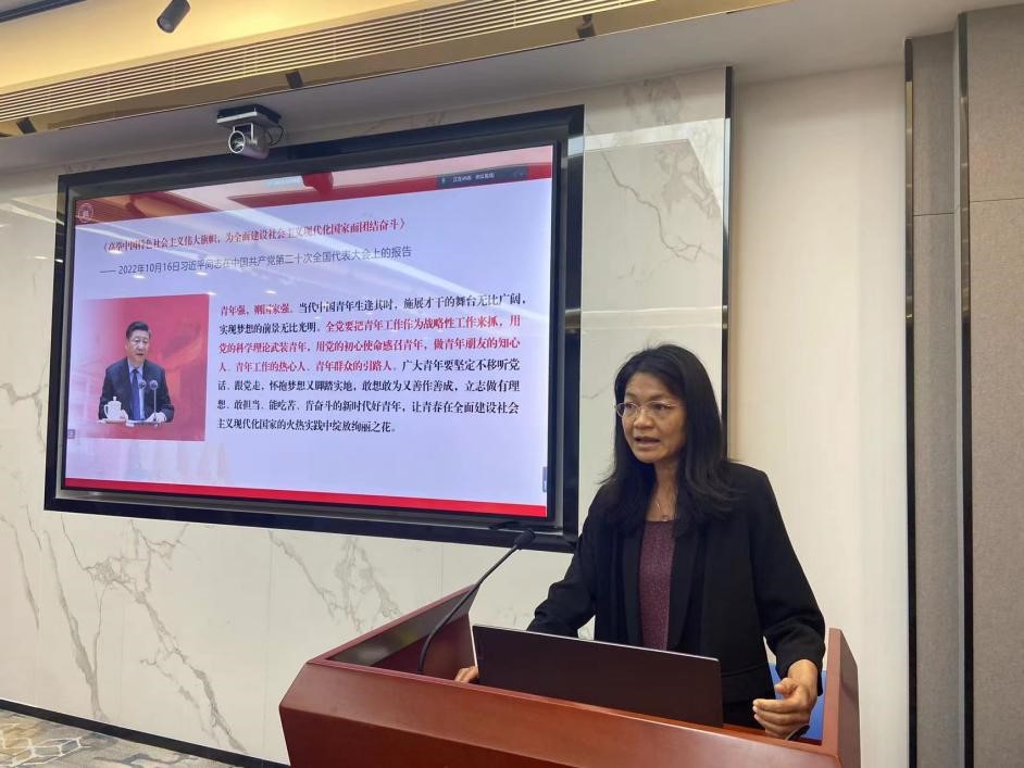 Williamhill中文党委副书记陈琼珠首先领学了习近平总书记2013年至今关于青年工作和思政教育的重要论述精神。她指出,习近平总书记围绕青年工作和思政教育发表的一系列重要论述,立意高远,内涵丰富,思想深刻,阐明了新形势下青年工作的重大理论和实践问题,指明了思政教育的基本要求和重点任务,对于引导青年树立远大理想、热爱伟大祖国、担当时代责任、勇于砥砺奋斗、练就过硬本领、锤炼品德修为具有十分重要的意义。