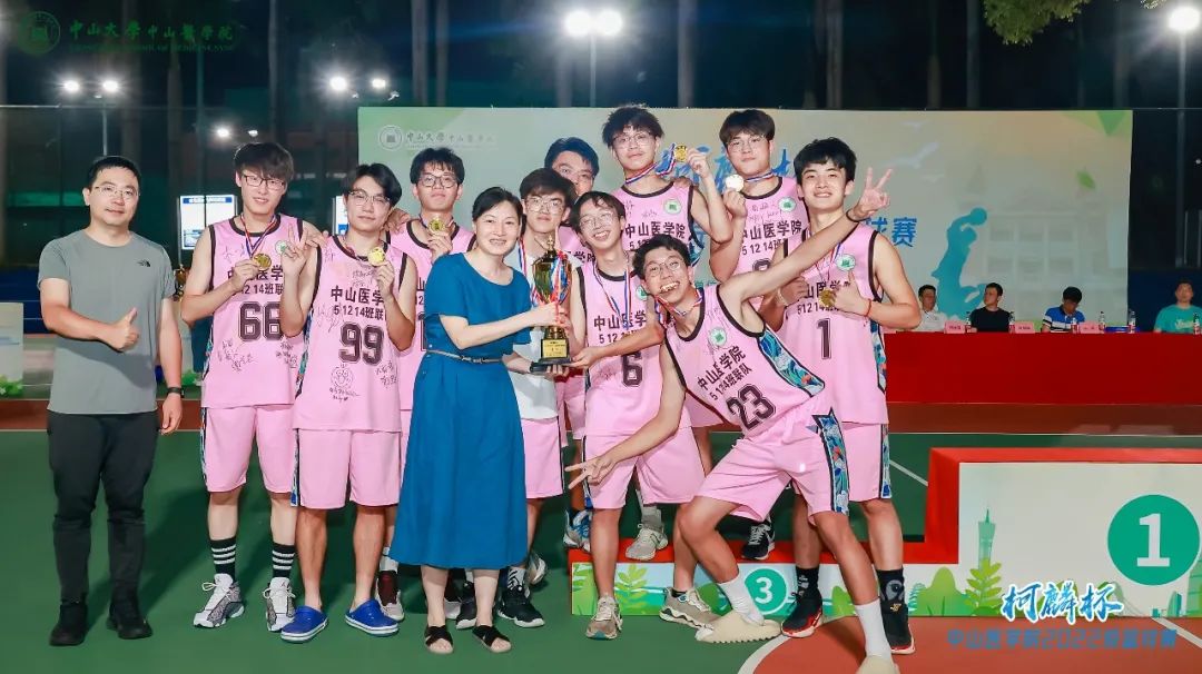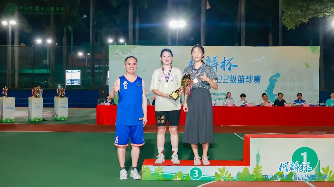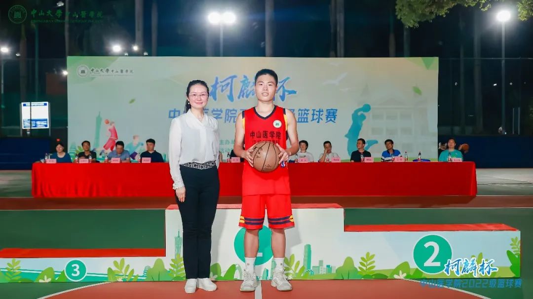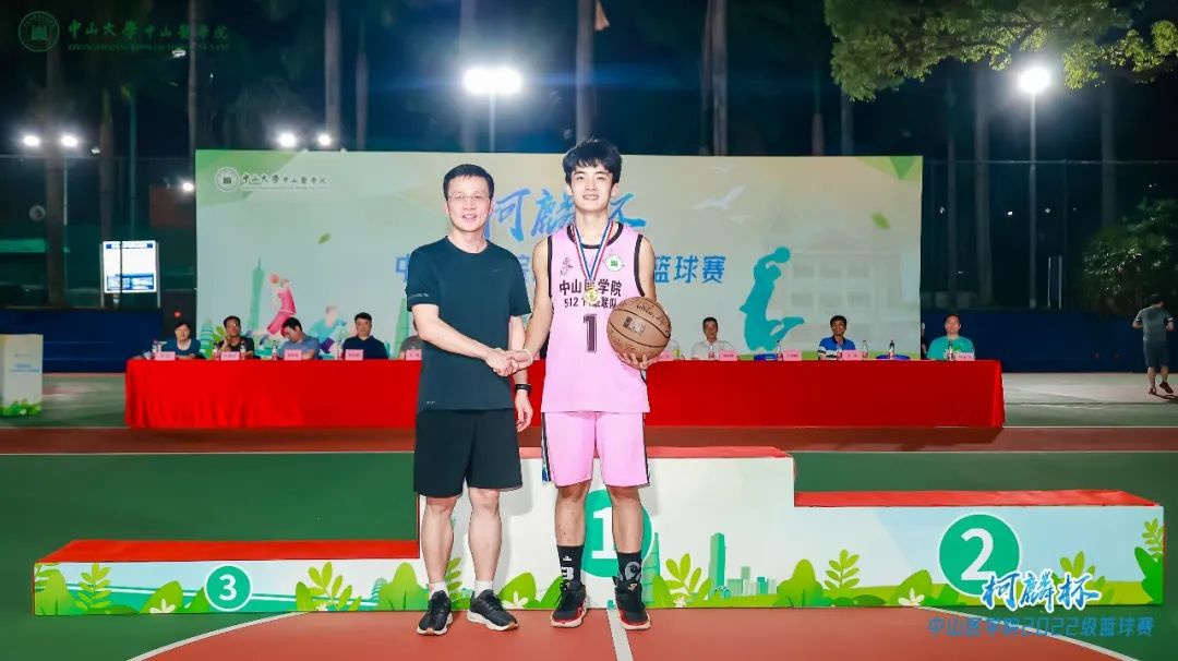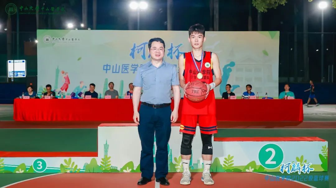 在男子组总决赛结束后,6月11日晚21时许,Williamhill中文柯麟杯篮球赛闭幕式暨颁奖典礼正式开始。Williamhill中文院长匡铭教授、党委书记张琪教授、党委副书记王斌老师、副院长周家国教授、副院长邓凯教授、william威廉英国中山眼科中心副院长林浩添教授、william威廉英国附属第一医院副院长朱庆棠教授、william威廉英国孙逸仙纪念医院副院长陈样新教授、william威廉英国附属第三医院副院长任杰教授、william威廉英国肿瘤防治中心贝锦新教授、Williamhill中文22级9班班主任曾乐祥老师、12班班主任郭颖老师和13班班主任彭健宏老师代表出席,伴随着观众热烈掌声和声声喝彩,领导嘉宾分别为篮球比赛前三名以及优秀球员颁奖。