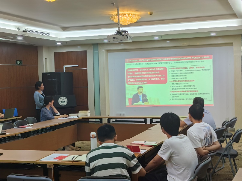 动员会议后,支部副书记柯琼同志以“深入学习贯彻习近平总书记关于教育科技的重要论述”为题为支部成员上了一次主题学习党课,解析了习近平总书记重要文章《新时代党和人民奋进的必由之路》中“贯彻新发展理念是新时代我国发展壮大的必由之路”,从科研工作者的角度谈到习近平总书记召开科学家座谈会时强调要切实加强基础研究,夯实科技自立自强根基,坚持“四个面向”,不断向科学技术广度和深度进军;在介绍习总书记提出“从现在起到本世纪中叶,全面建成社会主义现代化强国、全面推进中华民族伟大复兴,是全党全国人民的中心任务。”时,她表示作为一名教师党员,一方面要和年轻的学生党员们一起肩负起时代重任,不懈奋斗,为强国建设和民族复兴添砖加瓦,另一方面也要努力培养拥有“四个自信”的学生,并援引了习近平总书记给北京大学考古文博学院2009级本科团支部的回信中提出的期望勉励大家:“希望你们珍惜韶华、奋发有为,勇做走在时代前面的奋进者、开拓者、奉献者。”