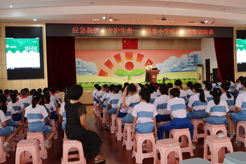 景泰小学师生们通过现场和直播同步,观看翔实生动的幻灯片,结合图片、动图、视频等深刻了解的急救技术基本知识。科普讲师现场示教生动自然、妙趣横生,极大地调动了同学们的学习兴趣,师生们都一致反映,开心地上了一堂别开生面的急救知识普及课。