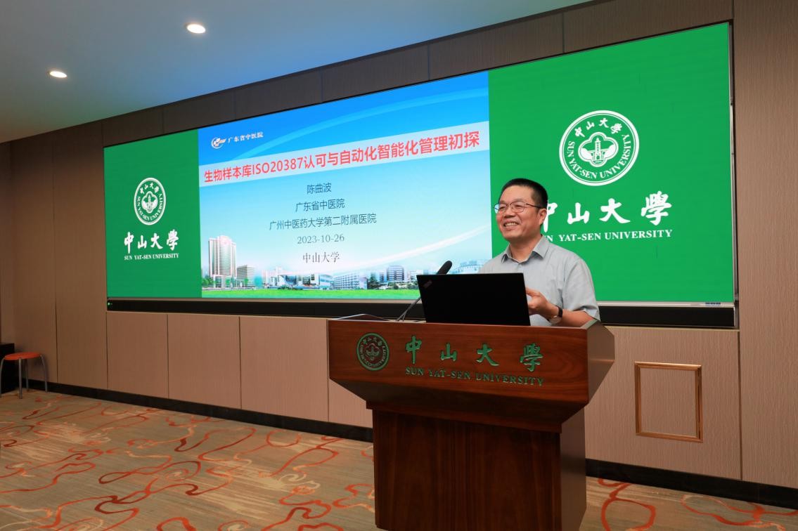 随后,广东省人类遗传资源保藏应用学会会长陈曲波教授进行了题为“生物样本库ISO20387认可与自动化智能化管理初探”的专题报告,就生物样本库标准化、自动化、智能化进行阐述。生物样本库ISO20387是中国合格评定国家认可委员会(CNAS)制定的《生物样本库通用要求》(CNAS-CL10:2020《生物样本库质量和能力认可准则》,是生物样本库的认可制度。陈教授强调,通过认可对于样本库的管理、技术、人员和实施运作等能力的全面提升具有重要作用,标准化、同质化的样本库管理有助于达成样本库建设的初心与使命,是走向质量可比、互认共享的必经之路。