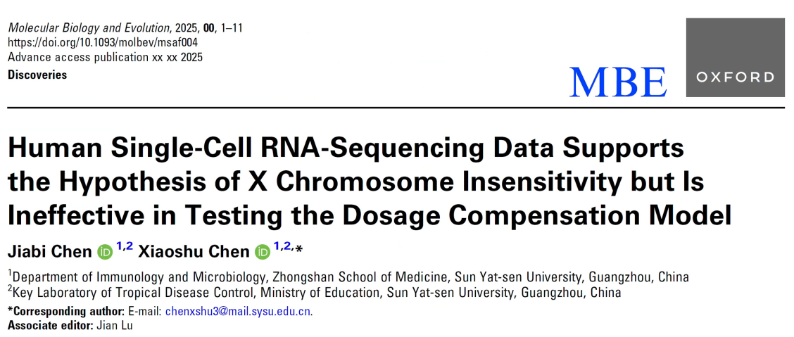 Molecular Biology and Evolution | Williamhill中文陈小舒团队提出了支持X染色体不敏感假设的额外证据