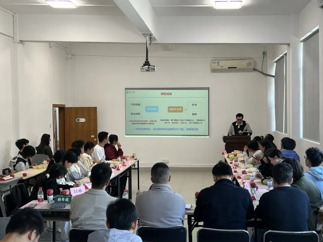 12月18日中午,临近大一学生的首次期末考试,2024级开展“医路有师 学韵同餐”师生午餐会活动。全体2024级学委和学生代表参加会议,教学办郑龙飞主任、杨冬成老师、班主任代表和辅导员出席。会中开展考前警示教育、学生学业发展交流、并以班级为单位进行教务教学、职业生涯规划“多对一”问答答疑,有效解答了同学们的疑惑。