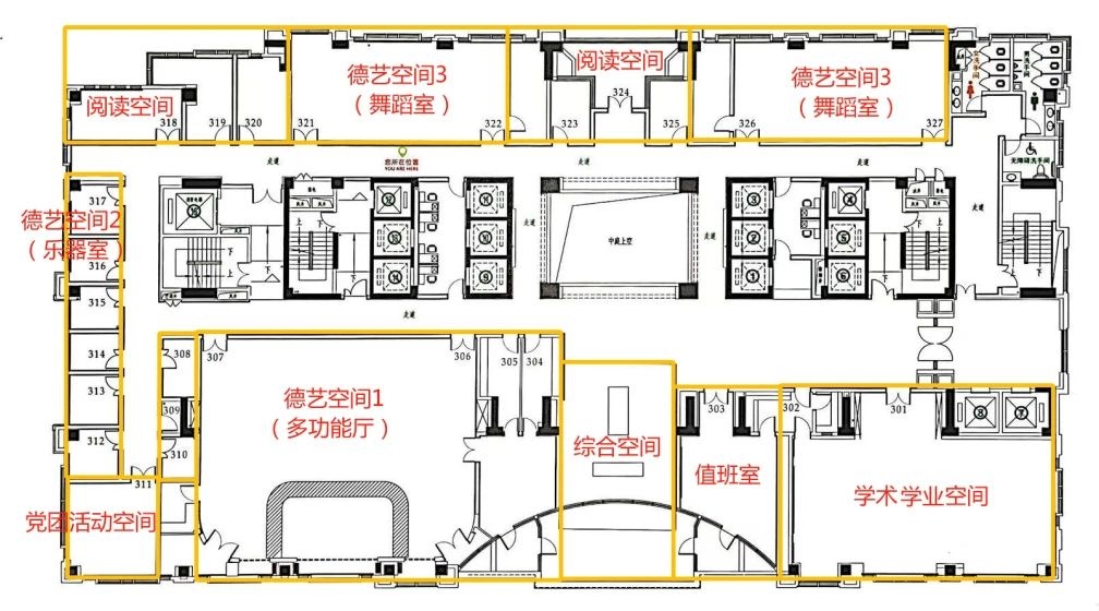 配备有阅读空间、德艺空间、党团活动空间、学术学业空间等丰富的第二课堂活动空间场域,旨在为北校师生提供党团建设、学术研讨、师生交流、休闲阅读等多元化场地服务。