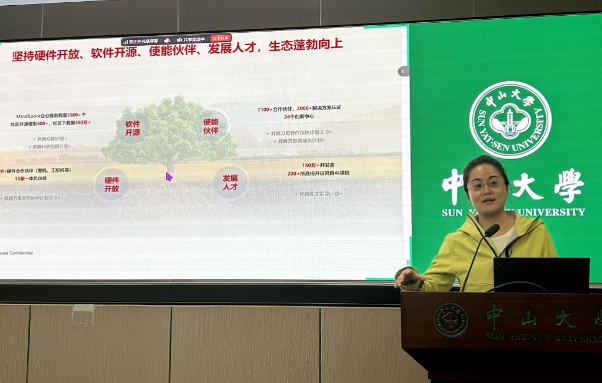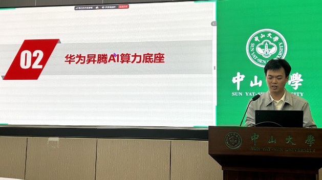 医渡科技大模型产品技术总监张玉杰以"构建医疗垂直领域大模型研发与应用中台"为主题,阐释了医疗垂域大模型赋能患者服务与落地应用;在上机实操环节带领同学们熟悉构建医学智能体的步骤,完成医疗典型场景的模型调优训练。华为技术有限公司广东代表处昇腾计算产品经理吴飞彬围绕“拥抱昇腾,智算未来,人工智能基础分享”主题,系统性讲述了人工智能技术从硬件基础架构到行业落地的全链路突破。