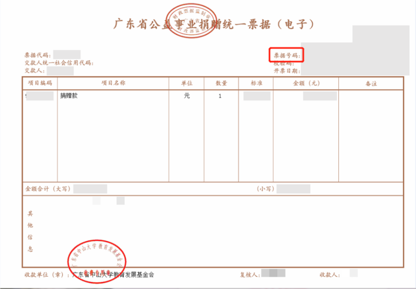 如需要补开电子发票,请将捐赠项目名称、捐赠金额、捐款凭证发邮件到edf@mail.sysu.edu.cn,我们将会有工作人员进行后续服务。