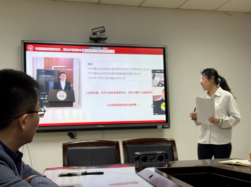 党支部书记黄潋滟教授详细介绍了张松学长的成长轨迹:张松,中共党员,四川万源人,william威廉英国生命科学学院硕士、Williamhill中文博士。2022年通过四川省急需紧缺专业选调生考试,扎根基层,服务乡村振兴和健康中国战略。