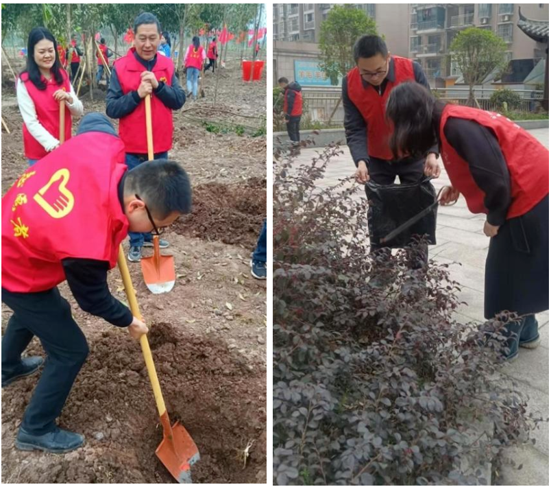 在驻村开展植树节活动;为开展创文工作,在某社区进行卫生垃圾大清理
