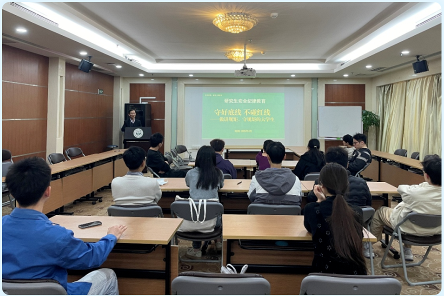 4月2日,学生工作办公室主任张裕荣老师主持召开了题为“守好底线,不碰红线,做讲规矩、守规矩的大学生”的研究生安全纪律教育专题会议。会议围绕防范电信诈骗、规范网络言行、加强宿舍管理等议题展开,结合近期高发案例深入剖析,重点提醒同学们清明假期要注意交通出行安全与校园安全。