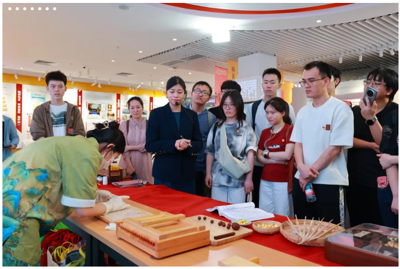 在企业代表带领下,师生们参观了企业文化展厅、智能化生产车间、综合制造部及党建长廊,现场体验了“中一安工牛黄丸制作技艺”非物质文化遗产项目。通过深入了解白云山中一药业360多年的发展历程、核心产品(如消渴丸、安宫牛黄丸等)及现代化制药工艺,师生们深切感受到老字号企业在高质量发展中焕发的新活力。