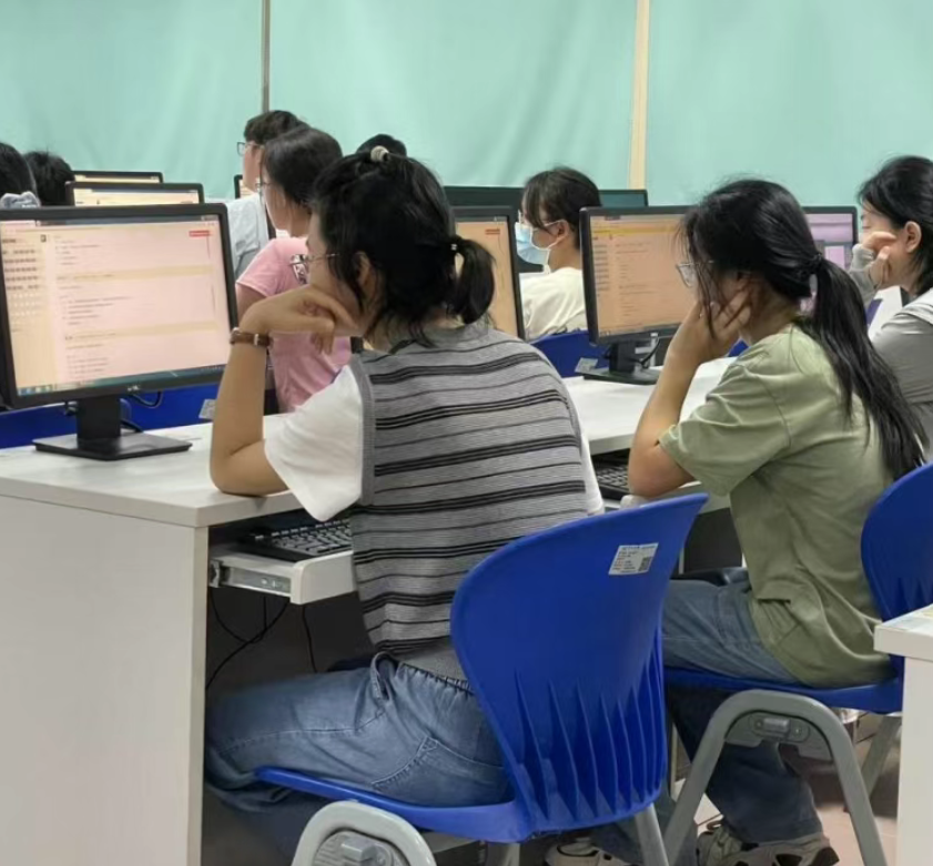 比赛依托学校在线教学平台,以计算机房为“主战场”,各参赛队伍均由3名同学组成,并以三人平均分数作为队伍最终成绩。赛制设计既考验个人能力,又强调团队协作。