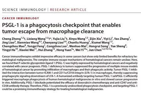 Science Immunology|陈俊团队报道新型巨噬细胞吞噬检查点PSGL-1