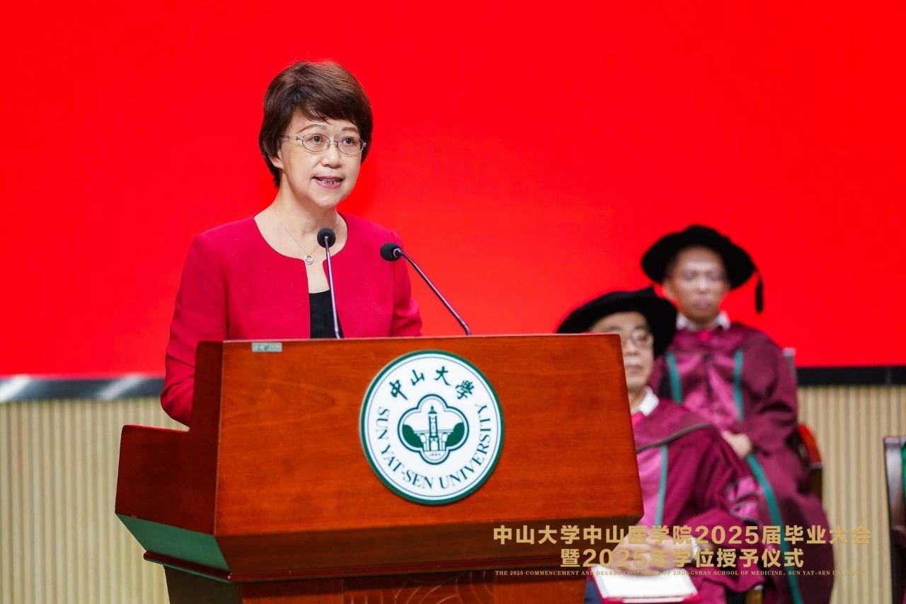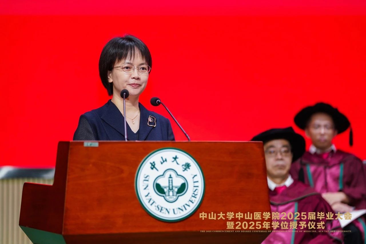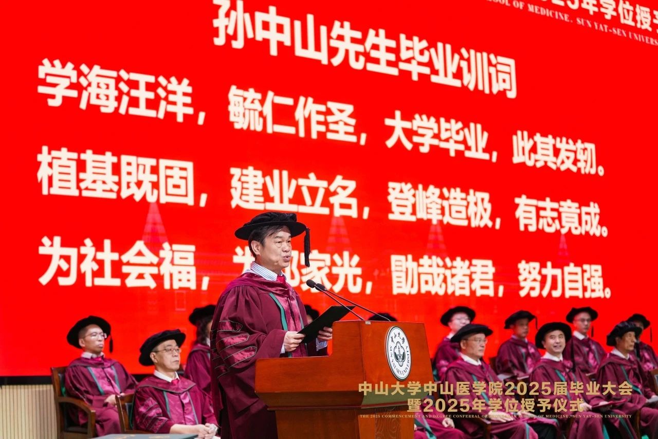 “回望44年前,我们带着对医学的敬畏与憧憬,庄严宣誓‘健康所系,性命相托’。转眼间,青春洋溢、风华正茂的你们也将开启人生新征程。相信在师长学者的言传身教下,你们必能秉承‘博学、审问、慎思、明辨、笃行’的校训,成长为‘具备卓越学习力、思想力和行动力,能够引领未来的创造性人才’。”