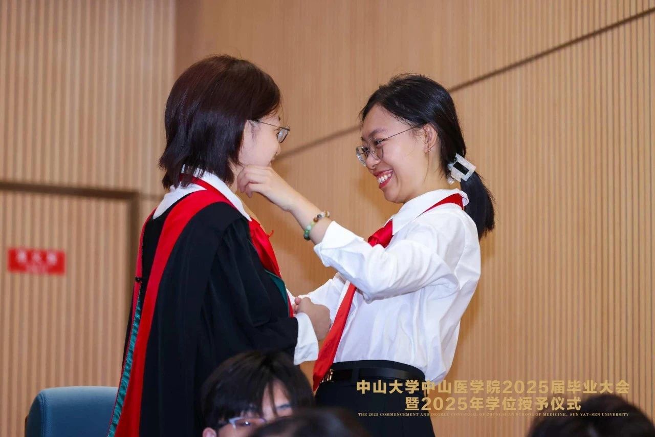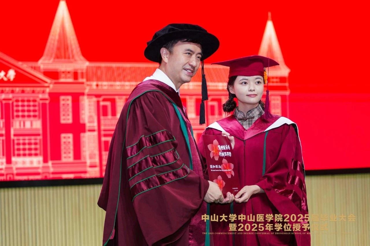 “临别之际,目光掠过校友会堂中身着学士袍的熟悉身影,才真切感受到离别的重量。我想,无论未来身在何方,我们都会记得中山二路74号的红砖绿瓦,记得图书馆前开满鲜花的校道,记得我们共同奋斗过的教室、实验室和病房。愿我们都能坚守初心,不忘使命,在各自的领域发光发热,成为中山医的骄傲!”