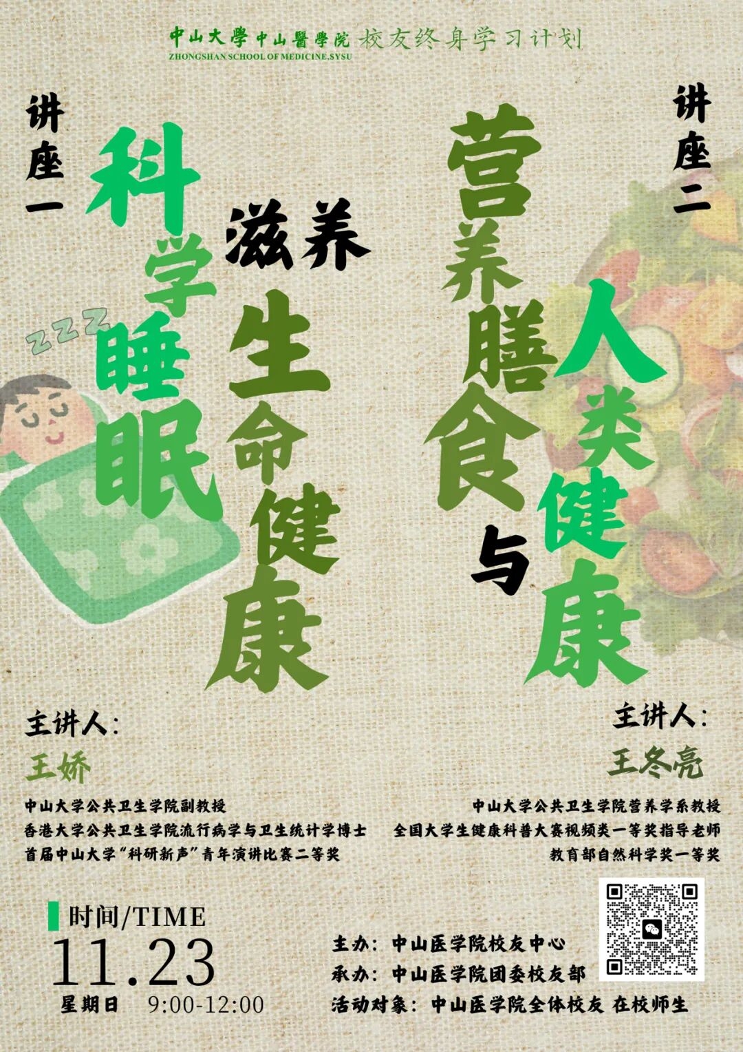 学院将邀请两位教授作营养、睡眠主题的系列讲座,别人担心你有没有“功成名就”,母校则担心你是不是“健康无忧”。愿各位校友能够带着来自母校满满的爱回家!