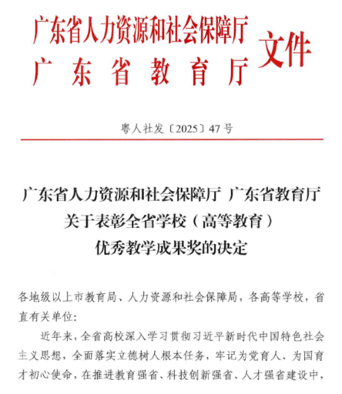 本研双捷报 | 我院本科、研究生教学成果双获广东省优秀教学成果奖