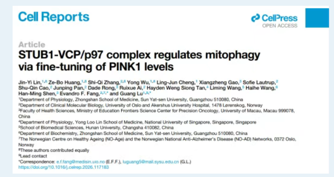 Cell Reports | 我院卢广团队联合挪威奥斯陆大学方飞团队揭示STUB1-VCP/p97轴调控线粒体自噬的新机制