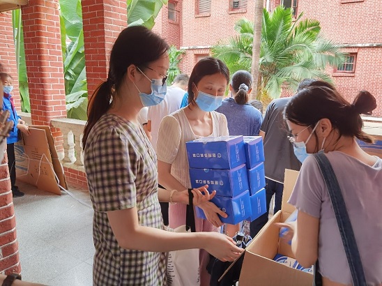 学院学生领取口罩现场