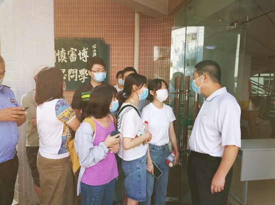校党委副书记余敏斌与进行核酸检测同学亲切交谈