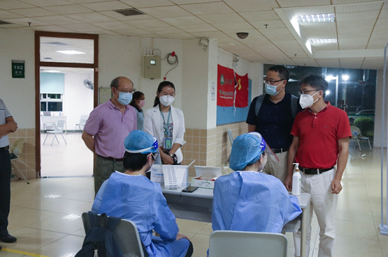疫情就是命令,防控就是责任。为迅速切断病毒传播途径,连日来,广州多个区域扩大核酸检测范围,全面开展第二轮全员核酸检测。6月6日中午1点,学院接到上级通知要求组织好学生,在当天完成全员核酸检测。我院在北校园的在校本科生和研究生3156人,时间紧、任务重。按照学校的要求,学院党委迅速部署,学生工作办公室紧急行动、全面动员,迅速完成了学生的动员组织工作。学校党委副书记余敏斌亲临现场指挥,医管处领导多方联系协调,孙逸仙纪念医院接到请示后迅速组建了核酸检测团队,18名逸仙医护人员火速从南校园赶赴北校园支援。从下午5点开始到晚上12点,北校园全员核酸检测工作有序展开。经过近七个小时的连续工作,顺利完成北校园5599名师生的核酸检测任务,展现了“无敌中山医”战胜疫情的组织力和专业能力。