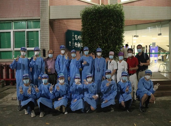 我院志愿者在完成核酸检测任务后的合影留念