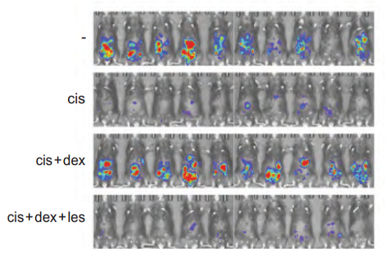 然后通过热转变分析,表面等离子共振等实验发现顺铂可以直接结合到GR的配体结合结构域(ligand binding domain, LBD) C622位点,而激活GR,并且与糖皮质激素有协同作用。潘超云教授等进一步发现顺铂直接结合C622激活GR诱导MAST1激酶表达是导致癌细胞抵抗顺铂的关键因素。最后通过卵巢癌腹腔转移同源小鼠模型等实验发现利用MAST1激酶抑制剂可以有效阻断糖皮质激素诱导的顺铂耐药。