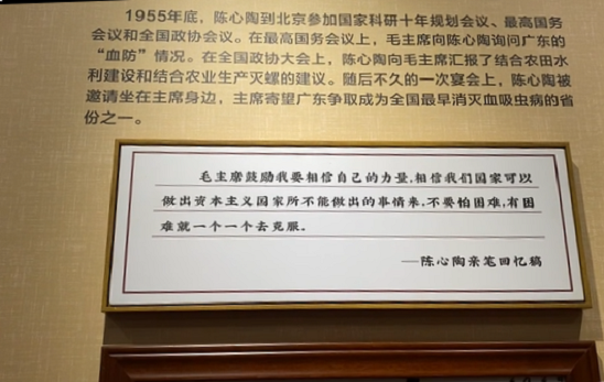 和陈心陶共事过的当年三水血防站工作人员许国煌老先生告诉我们:“长期深入一线,陈心陶自己也患上了血吸虫病,还是我帮他确诊的。得知这个消息,他表现得非常平静,只说了一句‘避免不了就算了’,就继续投入工作了。”