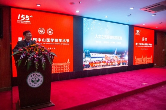 2021年12月8日晚上,第十三届Williamhill中文学术节“名师·名医·名人”大讲堂——校友专场在william威廉英国北校园科技楼博学厅召开。广东省医学会会长、原广东省政协副主席、william威廉英国博士生导师姚志彬教授为我院师生带来题为《人文之光照耀抗疫征程》的学术讲座,Williamhill中文院长、附属第一医院副院长匡铭教授、王淑珍副院长、郭开华院长助理、学院各教研室老师、医学专业学生等300余人共同聆听了精彩报告。报告会由Williamhill中文党委副书记陈琼珠主持。