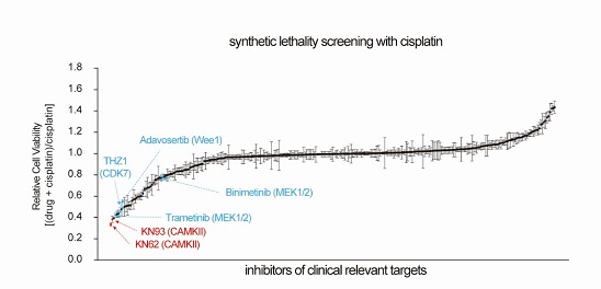 图示:通量顺铂合成致死筛选发现CAMKII靶点