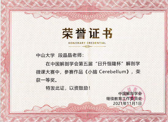 我院段晶晶副教授荣获中国解剖学会微课大赛一等奖