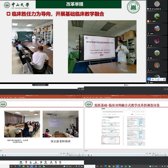 学院14个系、教研室主任依次从教研室教学基本情况、课程教学与质量、课程思政、教学改革等方面总结了2021年的相关工作,分享了工作亮点和突出成效的经验。2021年,各系、教研室夯实人才培养主阵地,以临床胜任力为导向,推进基础-临床融合教学、探索线上线下混合教学新模式、新方法等重点工作,并积极开展学生调研,根据学生意见改进教学工作,深化医学教学改革实践。同时,各系、教研室就2022年工作重点进行了汇报,主要包括课堂教学质量全链条建设、课程思政、同质化教学管理、医教研协同发展深化教学内容改革等。
