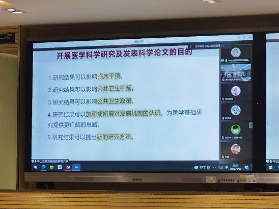 吴晓瑛老师围绕如何开展临床科研工作作了相关分享。她结合现阶段国家对于八年制毕业论文高要求、严把关的现状,提出同学们在科研的路上要勇于克服困难,坚守初心,坚定信念,时刻铭记研究的落脚点在于治病救人,在于解决临床或者公共卫生领域存在的实际问题,为同学们树立了原则标杆。
