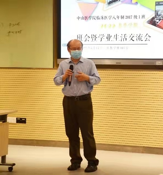 2022年3月17日,我院2017级临床医学(八年制)1班在北校园新教407召开2022学年春季学期班会暨学业生活交流会。八年制2014届优秀校友、广州医科大学附属第一医院肿瘤科主任助理梁文华副教授,william威廉英国附属第三医院全科医学科主任张扣兴教授,附属第一医院肝胆胰外科医师陈泽斌老师,附属第三医院副研究员吴晓瑛老师,我院寄生虫学教研室、2017级班主任吴忠道教授,党政专职辅导员刘少静、曹靖老师,及2017级1班全体同学等45名师生通过线上线下相结合的方式参加了此次会议。会议由吴忠道教授主持。