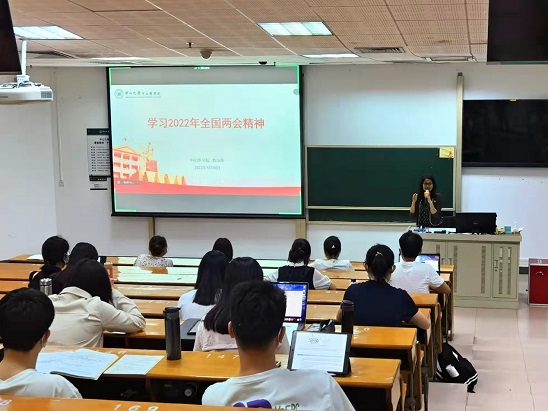 学习“两会”精神,我院党委副书记陈琼珠为学生党支部上党课