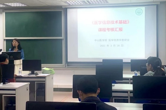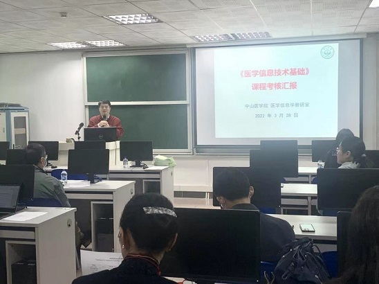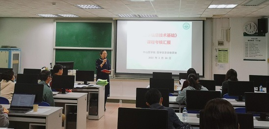 课程负责人周毅教授汇报了《医学信息技术基础》课程的基本情况,包括教学团队、课程简介与教学大纲、课程结构与教学安排、教学工作组织、课程教学总结、教育教学改革工作、课程考核工作评价七个方面。