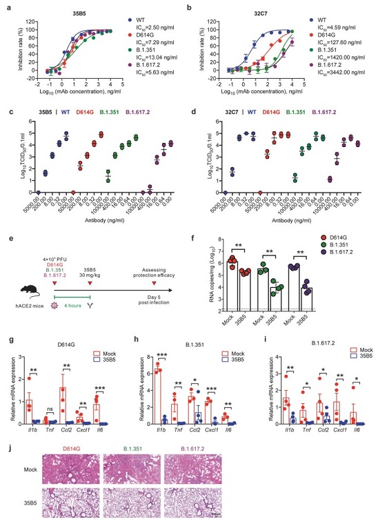 图注: 35B5单抗可在体外及体内强效中和新冠VOC