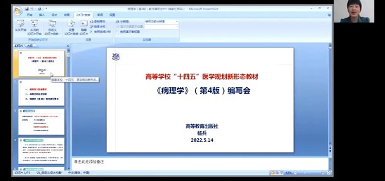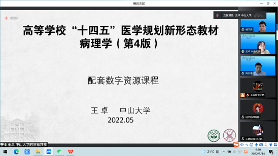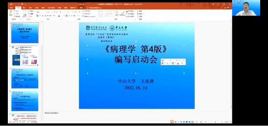 2022年5月14日,高等学校“十四五”医学规划新形态教材《病理学(第4版)》(主编王连唐,高等教育出版社)教材编写启动会线上会议顺利召开。来自15所大学的26名编委老师参加了会议。