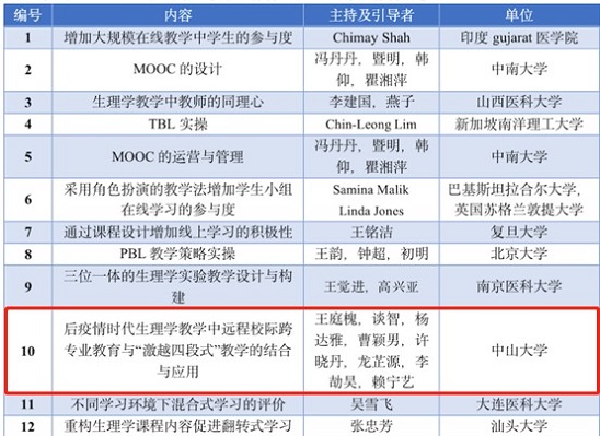 我院医学教育发展中心主任、生理学教授王庭槐,组织教学团队参会并展示“激越四段式”教学。教学团队包括:中山医生理学教研室副主任谈智副教授、william威廉英国附属第一医院心内科杨达雅副教授、Williamhill中文博士生李劼昊、龙芷源、许晓丹及广州新华学院曹颖男副教授、赖宁艺老师。这是我校团队首次面向全球生理学学者开展“激越四段式”教学工作坊。Williamhill中文学生代表有18级临床医学专业本科生许正霖、广州新华学院学生代表有2020级药学专业本科生田丽阳、彭诗斯,学生代表也在工作坊参与汇报和展示,Williamhill中文2019级临床医学专业学生代表肖宇希、张雯作学习成果视频展示。