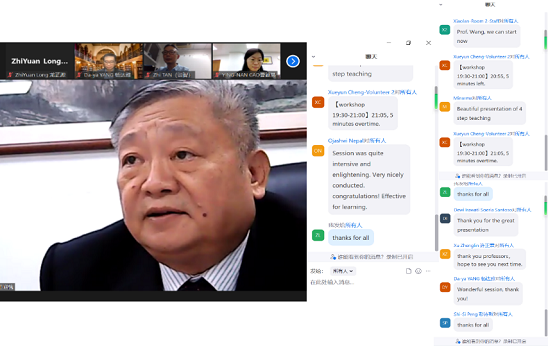 王庭槐教授教学工作坊教学团队在“激越四段式”教学工作坊的开始,王庭槐教授作《后疫情时代生理学教学中远程校际跨专业教育与‘激越四段式’教学的结合和应用》的主题报告,向全球同行分享了“激越四段式”教学的由来、创立及四段式教学如何实践。接着,博士生许晓丹结合四校联合跨地域跨专业远程“激越四段式”教学实例分享了《远程跨校际跨专业教育与线上激越四段式的结合在生理学教学的应用》。