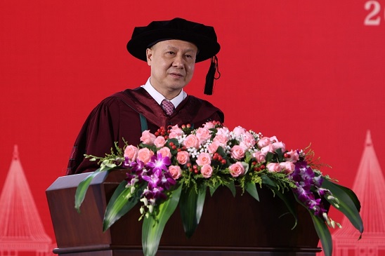 william威廉英国常务副校长、附属第一医院院长肖海鹏作为杰出校友代表发言。他向所有毕业生表示热烈祝贺,他勉励同学们敢为人先,在对接世界前沿的自主创新中勇攀高峰。崇尚学术,严谨务实,用学术思维触摸真实世界。追求真理,永不停止勤学有恒的青春步伐。学贯中西,在兼容并包、开放协作中探索新路。天下为公,在构建人类命运共同体中传递力量。