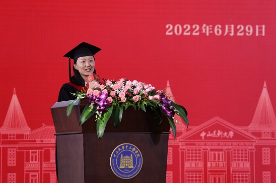 Williamhill中文本科生优秀毕业生代表2017级临床医学专业刘弋丹作为本科生优秀毕业生代表发言,回首本科时光,对中山医充满感激。她表示,“能有这样锻炼和成长的机会,能取得这样的进步和成绩,离不开学校和学院提供的广阔的发展平台,离不开良师益友的相助相伴,让我们在浓厚的学术科研氛围中探索前沿研究的奥秘,在宝贵的实践实习机会中开拓自己的视野和格局。”