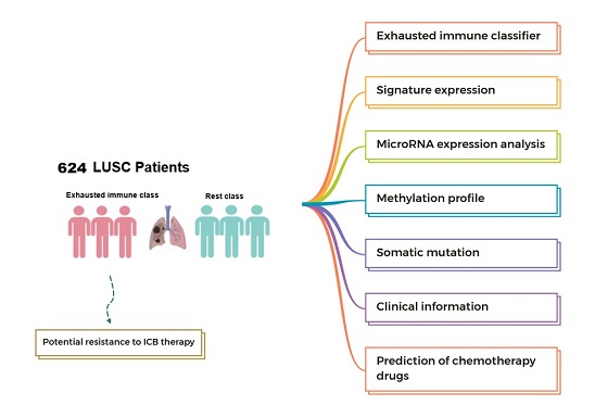 近日,我院李伟忠教授团队在Genome Medicine (中科院一区,IF:15.266)上发表了题为Identification of a cytokine-dominated immunosuppressive class in squamous cell lung carcinoma with implications for immunotherapy resistance的论文。该研究收集了癌症基因组图谱TCGA(The Cancer Genome Atlas Program)和基因表达数据库GEO(Gene Expression Omnibus)中的624例肺鳞癌病人的转录组数据及相应的其它组学数据,将来自TCGA的250晚期(ⅡA-Ⅳ)的肺鳞癌病人作为发现集,其余数据作为验证集,鉴定了一个细胞因子主导的免疫抑制亚型。该亚型病人占比大约为30%,其表现为潜在的免疫治疗耐药,而用于预测该类型病人的167个基因也被证实在免疫治疗耐药的黑色素瘤病人中富集。分子特征分析表明,该亚型患者表现出显著的T 细胞耗竭、较高的免疫抑制细胞(M2 巨噬细胞和 CD4 Treg)比例、9 个免疫抑制性检查点(CTLA4、PDCD1、LAG3、BTLA、TIGIT 、HAVCR2 , IDO1 , SIGLEC7和VISTA)共上调,并且抗炎的细胞因子TGFβ 和 CCL18表达增强。基于TCGA多组学数据,该研究将该免疫抑制的亚型与多种组学数据进行关联分析,并构建了高度可视化的肺鳞癌免疫抑制亚型的多组学在线分析平台(http://lilab2.sysu.edu.cn/tex/ & http://liwzlab.cn/tex/),以供研究人员在多种分子水平上探索潜在的免疫治疗耐药机制。