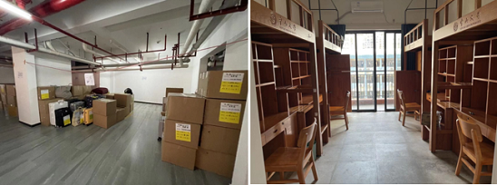 搬迁工作结束后,学院领导与辅导员老师走访慰问回迁学生,表达学院对同学们回归北校园的欢迎之情,了解学生的回迁入住情况,查看宿舍基础设施和环境卫生,嘱咐学生注意遵守宿舍管理规定,确保假期人身和财产安全,以良好的精神面貌适应新环境和迎接新学期。