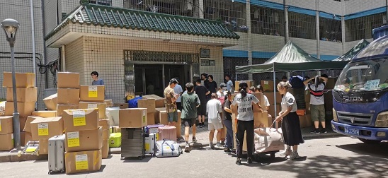 搬迁当天,Williamhill中文院党委副书记带领辅导员老师进行现场调度,学院各级学生骨干与青年志愿者发挥模范带头作用,带领同学们齐心协力,顺利完成搬迁任务。在出发地南校园,辅导员和志愿者在各栋宿舍楼维持秩序,组织学生行李物品有序下楼并帮助同学们克服困难将行李顺利地搬上货车后,乘坐大巴前往北校园。临走前做好搬迁场地和宿舍卫生,展现医学生的高素质。在北校园,辅导员提前走访学生宿舍,做好搬运小推车、遮雨棚等周全准备,确保到达学生入住过程顺利;学长团引航指路、协助搬运、为学弟学妹讲解须知、办理入住,用速度和温度,指引中山医学子归家的路、温暖同学们归家的心。搬迁过程中同学们积极配合、互相帮助,整个过程组织有力、安全有序。