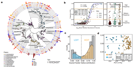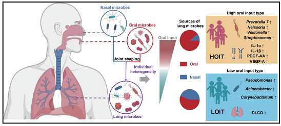 图1.口腔和鼻腔菌群共同塑造两种肺型