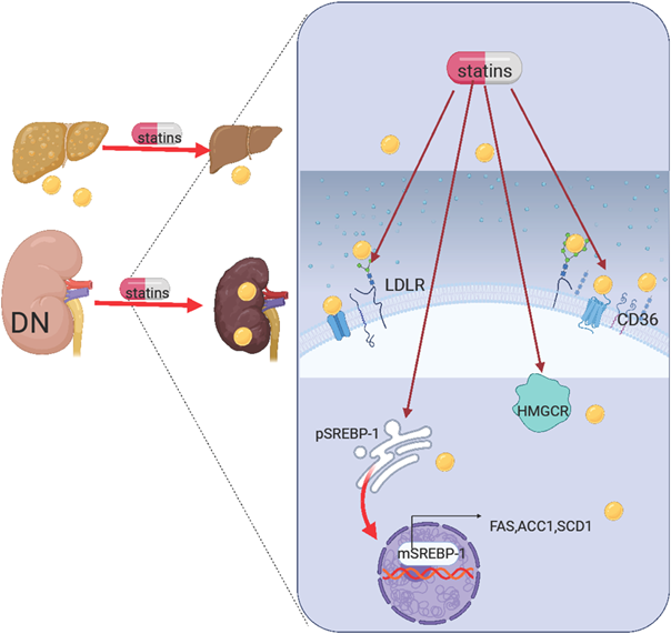 值得注意的是,他汀类药物仍然是糖尿病患者降脂治疗及预防心血管事件的基石用药,其所带来的心血管获益毋庸置疑。服用他汀类药物会降低低密度脂蛋白、 胆固醇,降低高危患者的冠状动脉死亡率和发病率。然而,长期服用他汀类药物对糖尿病肾病进展的影响仍存在争议。该成果通过比较医学研究,提示糖尿病患者长期使用他汀类药物治疗时需要关注其对器官脂代谢影响和潜在的风险,并为进一步临床研究提供基础。