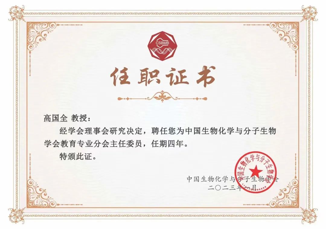 我院高国全教授我院高国全教授当选中国生物化学与分子生物学会教育专业分会第四届主任委员